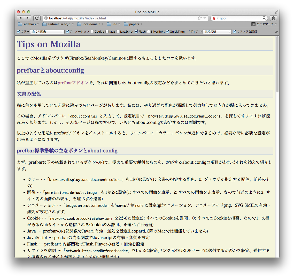 ここではMozilla系ブラウザ(Firefox/SeaMonkey/Camino)に関するちょっとしたコツを扱います。