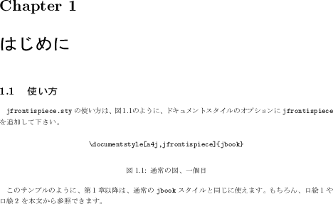 (これは、第一章以前に置いた figure 環境)詳しくはサンプルファイル jfrontispiece.tex, jfrontispiece.dvi を見て下さい。![]()