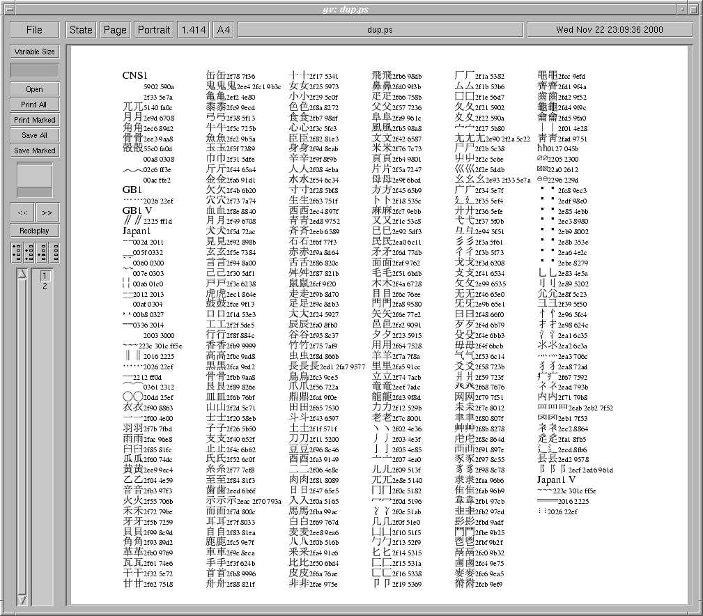 PostScript 3 printer, gs-cjk, CIDFontType0 fonts