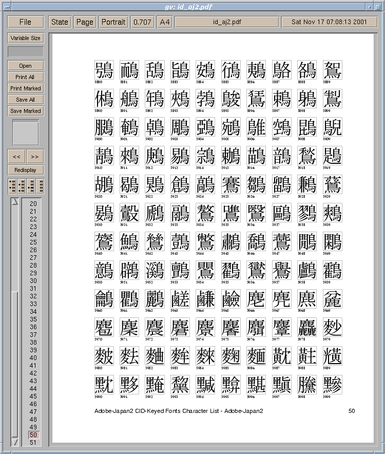 CJK PostScript files for detailed test