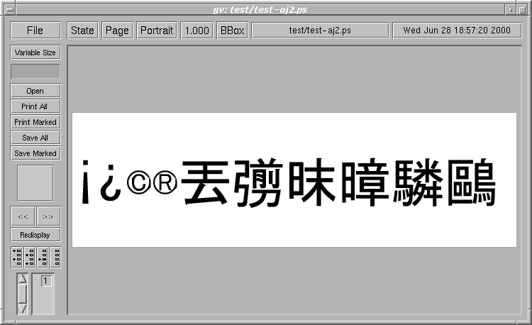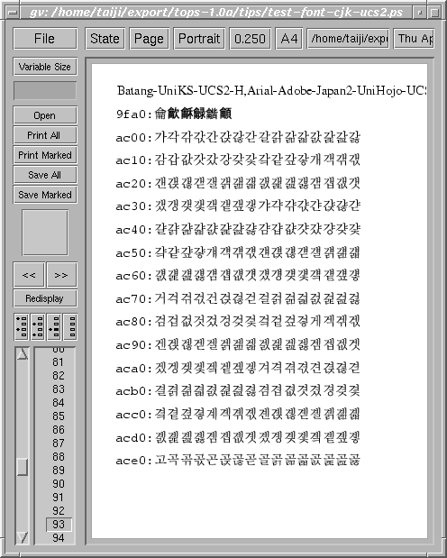 [2000/3/24] I made a patch to use CJK(Chinese: PRC, Big5 or Unicode, Japanese: Shift-JIS or Unicode, Korean: Wansung, Johab or Unicode) TrueType fonts as CID-Keyed fonts on Ghostscript 6, based on this site by Mr. Hideyuki Suzuki. The features of this patch for gs_ttf.ps of GS 6 as follows: